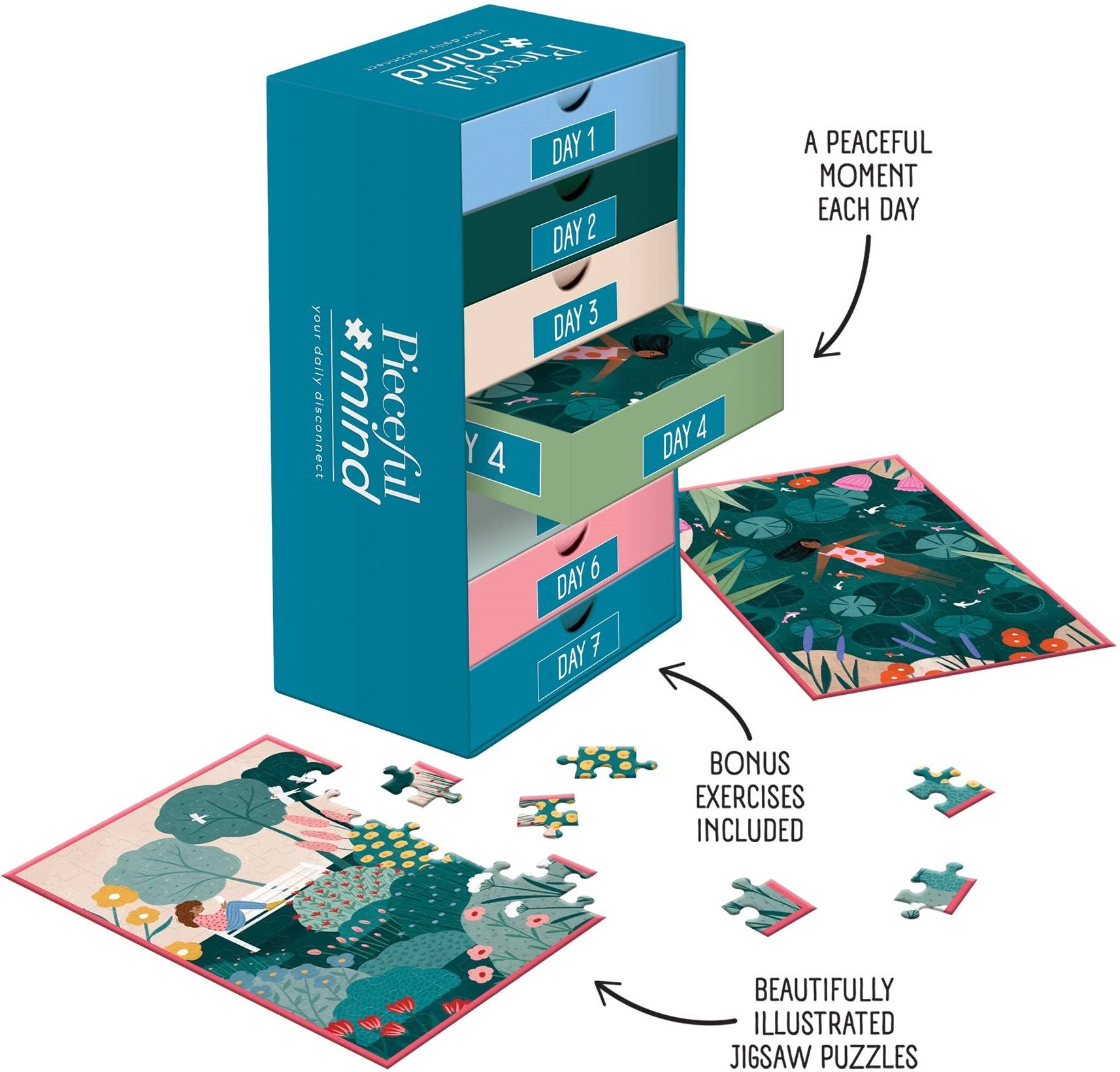 Vytvorte si svoju dennú rutinu pokoja: každý deň poskladajte jeden zo šiestich prírodných motívov a na konci týždňa si užite prekvapivé odhalenie. Puzzle sú navrhnuté tak, aby podporili relaxáciu, všímavosť a dobrú náladu.