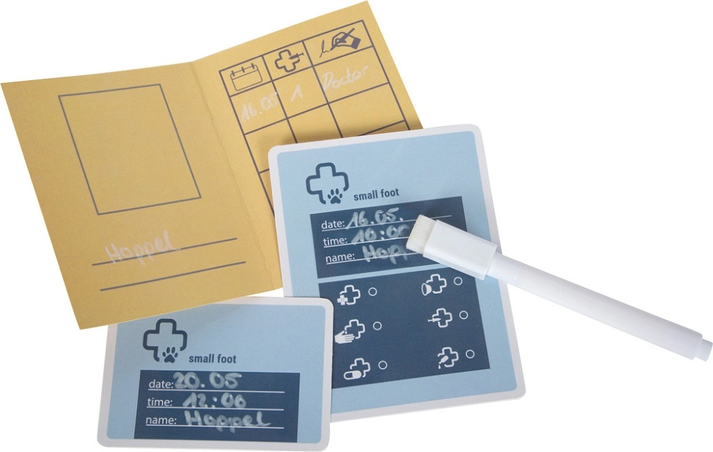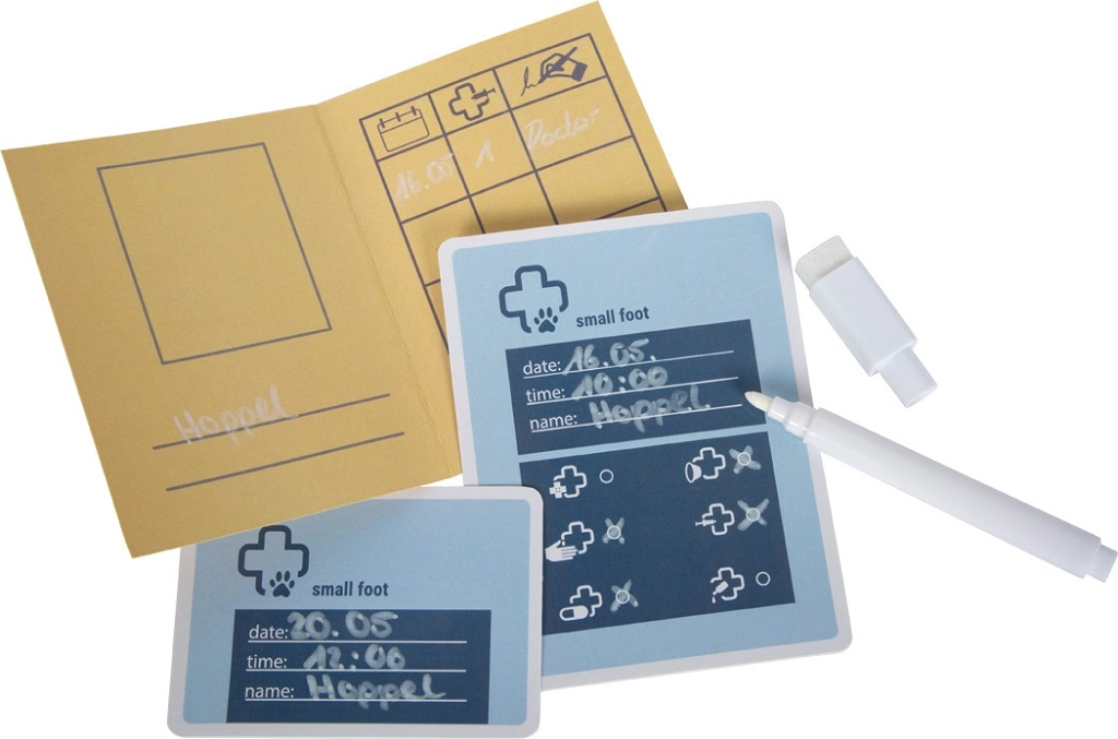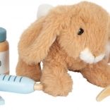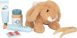 Táto roztomilá veterinárna sada kombinuje mäkkého plyšového zajačika s realistickými nástrojmi: stetoskopom, teplomerom, otoskopom, injekčnou striekačkou, obväzom a ochranným golierom. Nechýba ani „röntgenový“ tablet s vymeniteľnými snímkami (pes, mačka, zajačik, kôň) a popisovateľnými kartami na záznamy. Deti si precvičia starostlivosť o zvieratká, rozvoj slovnej zásoby aj zdravotné povedomie – a pritom si užijú veľa nápaditej zábavy.