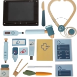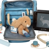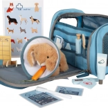 Praktická taška slúži ako prenosný box pre zajačika aj organizér všetkých nástrojov. Vďaka prehľadným vreckám a zipsu je všetko na svojom mieste, pripravené na vyšetrenie. Sada je z kvalitných materiálov (plyš, drevo, textil, papier, plast) a je navrhnutá na jednoduché uchopenie detskými rukami.