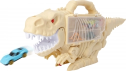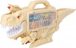 Zábavný set pre malých pretekárov: strieľajúci dinosaurus s autíčkami s dĺžkou 47 cm slúži ako prenosný kufrík, organizér na autíčka a zároveň akčná dráha s vystreľovaním. Obsahuje 2 autá a 2 figúrky dinosaurov, má otváraciu stranu s priehradkami, zdvihnutý chvost ako dráhu a raketový strelec s tlačidlom pre extra akciu.