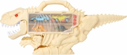 Prebuďte fantáziu a rýchlosť v jednom. Tento originálny dinosaurus kombinuje úložný kufrík na malé hračky, parádnu zjazdovú dráhu aj akčnú streľbu. Otváracie boky ukrývajú prehľadné priehradky na autíčka, chvost sa zdvihne a premení sa na rampu – autíčko prejde telom dinosaura a vyjde von pod hlavou. Na temene je odklápací panel na vloženie rakety, ktorú vystrelíte stlačením horného tlačidla.
