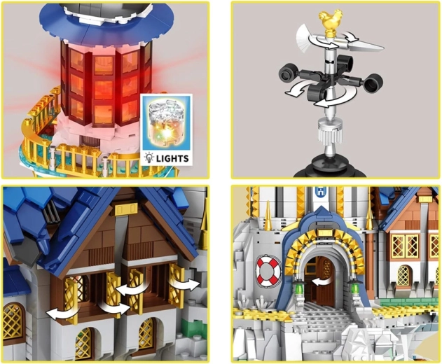 Horný segment veže možno otáčať, čo umocňuje dojem funkčného majáka a pridáva modelu interaktivitu.