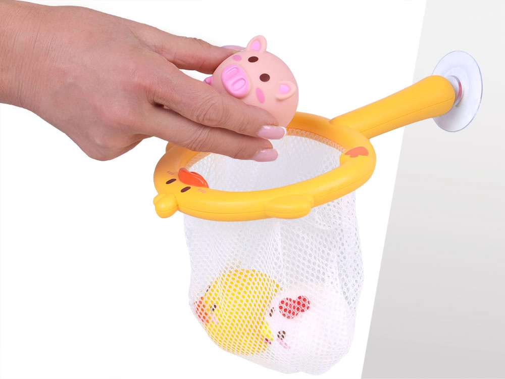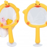 Sieťka v tvare kačičky s prísavkou sa prichytí na hladké povrchy. Deti môžu zvieratká loviť, ukladať a nechať odkvapkať – poriadok vo vani je hračka.