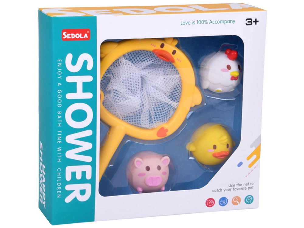 Tento roztomilý set do kúpeľa premení každý kúpeľ na zábavnú hru. Deti môžu pomocou sieťky v tvare kačičky loviť plávajúce zvieratká a trénovať tak jemnú motoriku, koordináciu ruka–oko aj trpezlivosť. Prísavka na rukoväti umožní sieťku prichytiť na hladký povrch vane či obkladov, takže hračky po kúpaní ľahko uschnú a zostanú prehladne uložené.