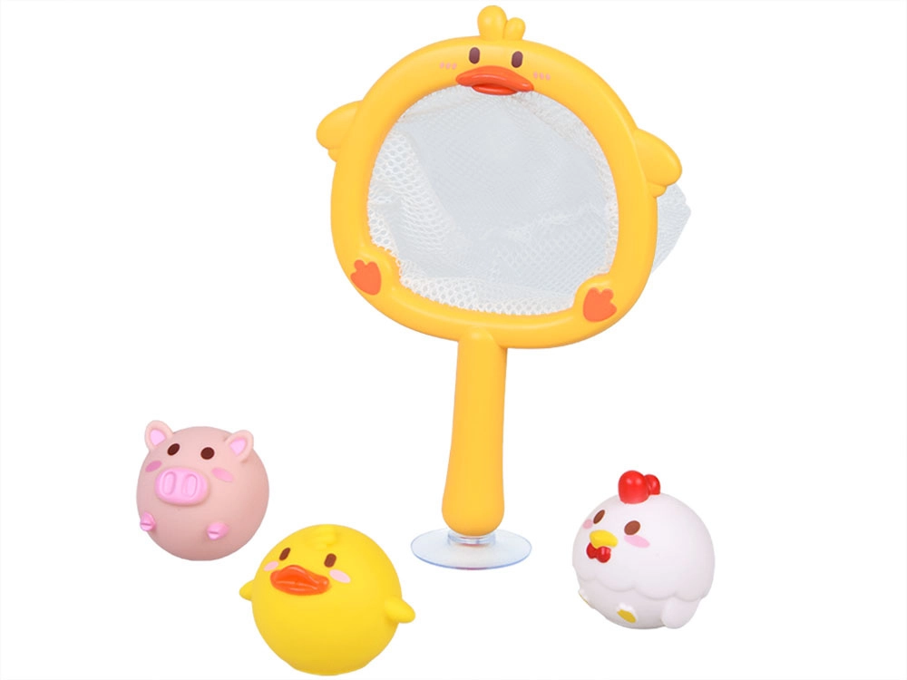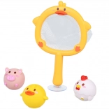 - Sieťka s prísavkou + 3 gumové zvieratká (kačka, prasiatko, sliepočka)