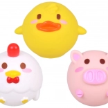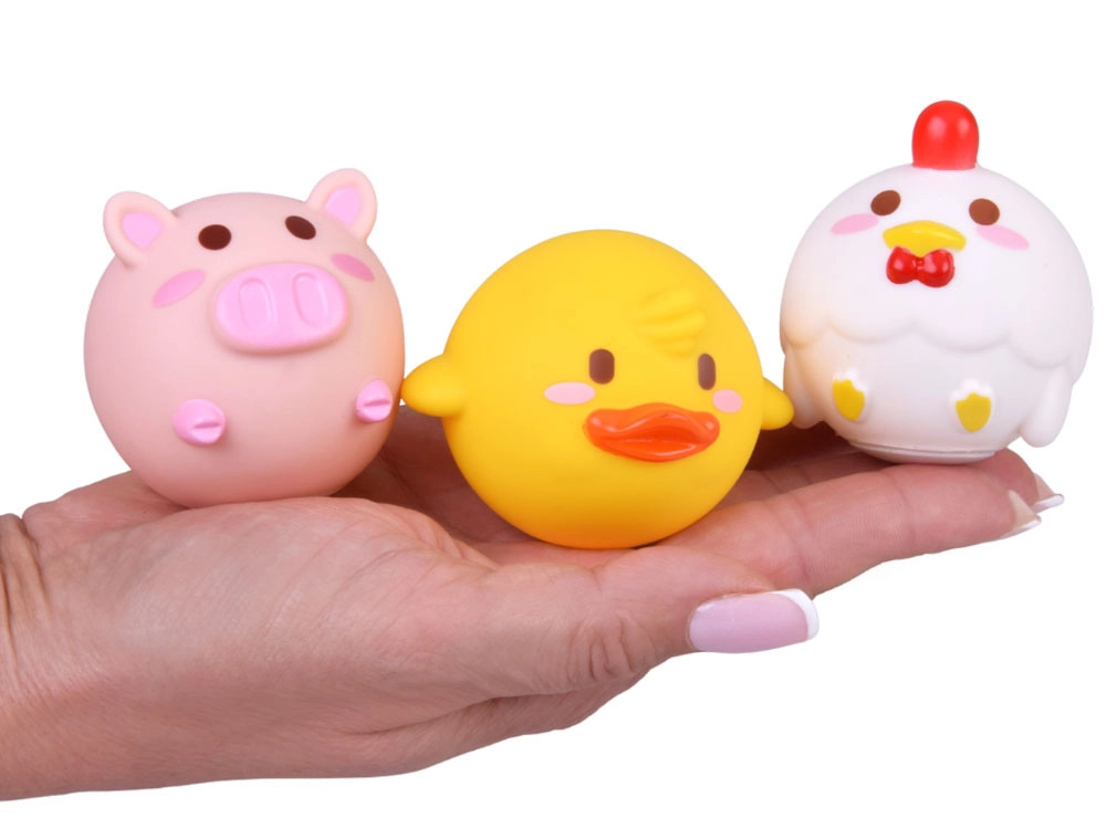 Zvieratká majú guľatý tvar a neobsahujú žiadnu dierku – dovnútra sa tak nedostáva voda, čo zabezpečuje lepšiu hygienu a dlhšiu životnosť. Jasné farby a priateľské výrazy zvieratiek podporujú rozvoj zmyslov aj učenie formou hry – spoznávanie farieb, názvov zvierat alebo jednoduché počítanie.