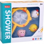 Spríjemnite deťom čas vo vani s hravým setom na chytanie zvieratiek. Obsahuje sieťku v tvare kačičky s prísavkou a tri mäkkučké zvieratká – kačka, prasiatko a sliepočka. Vďaka bezpečným zaobleným tvarom, materiálu bez ostrých hrán a zvieratkám bez dierky je hranie hygienické a ľahko sa udržiava v čistote.
