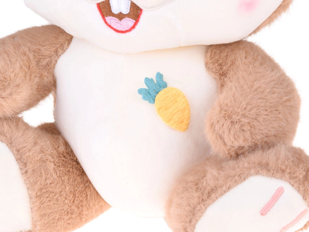 Plyšový zajačik Karmelek vyniká hebkým karamelovým chĺpkom a nežným výrazom s roztomilými zúbkami. Ohybné ušká vďaka všitej výstuži ľahko nastavíte – zajačik tak získa zakaždým nový výraz. Krémové bruško s decentnou výšivkou (mrkvička/ananás) dodáva hračke pôvabný detail.