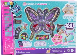 Táto kreatívna sada prináša deťom hodiny zábavy a rozvoja zručností. Vďaka veľkému množstvu samolepiek a korálikov môžu vytvárať originálne dekorácie, náramky či náhrdelníky a zdobiť svoje obľúbené predmety. Praktický organizér v tvare motýľa udrží všetky dieliky prehľadne na jednom mieste.