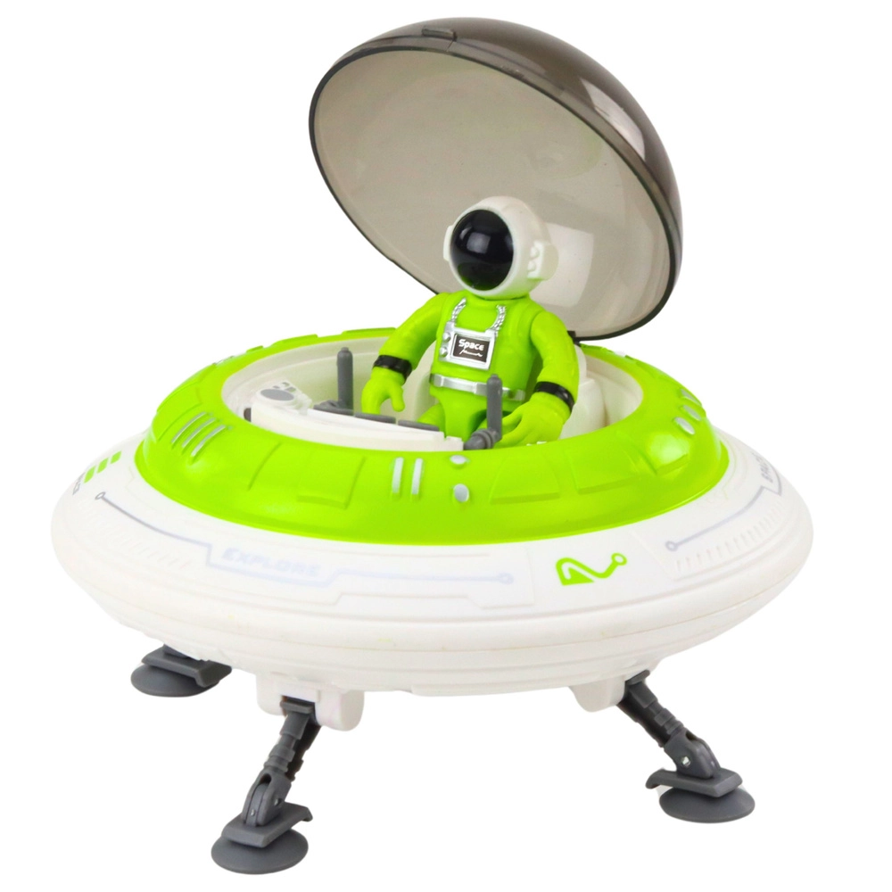Zeleno odetý astronaut s prilbou sa zmestí do kokpitu alebo môže hrať samostatné scény pristávania a objavov.