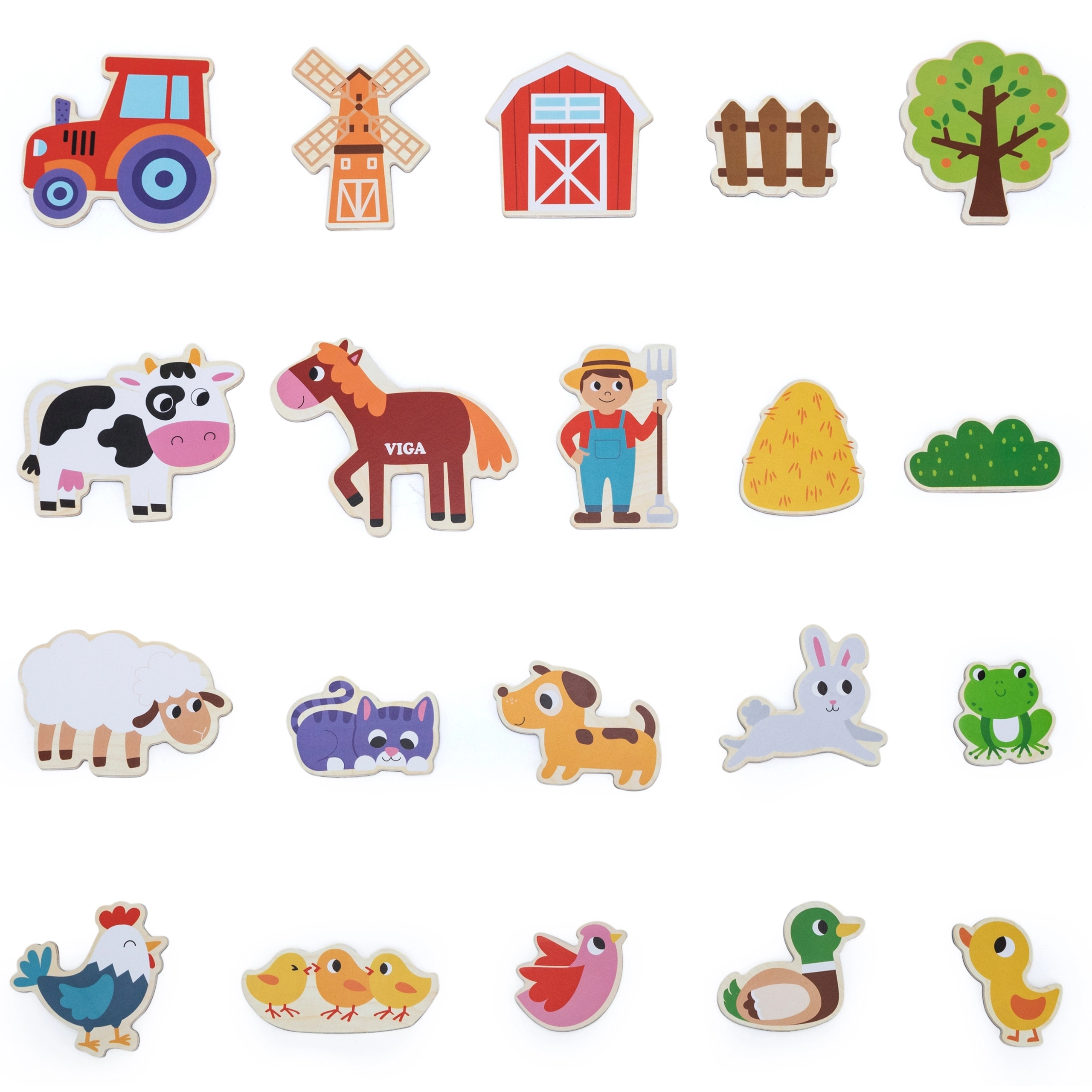 Podporte fantáziu a jemnú motoriku detí s kvalitnými drevenými magnetmi VIGA. Ľahké, odolné a ľahko uchopiteľné dieliky so silným magnetickým povrchom skvele držia na akejkoľvek kovovej ploche. Výrazné farby a rozkošné zvieratká prirodzene upútajú pozornosť a inšpirujú k otvorenej hre aj učeniu.