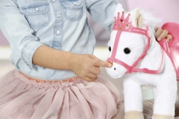 Interaktívne ušká prebudia hru k životu: po stlačení pravého uška poník erdží alebo fučí, ľavé uško spustí klapot kopýt. Keď mu bábika dá pusinku na ňufáčik, poník odpovie zvukom bozku. Mäkké prevedenie je ideálne na mojkanie a podporuje rozvoj fantázie a empatie.