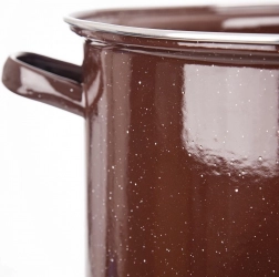 Veľký smaltovaný hrniec s objemom 15 litrov v elegantnej hnedej farbe je ideálny na varenie a dusenie vo veľkom. Má priemer 36 cm, výšku 19,5 cm a vďaka pohodlným úchytom sa ľahko prenáša. Je vhodný na plynové, elektrické, keramické, halogénové aj indukčné sporáky a možno ho umývať v umývačke.