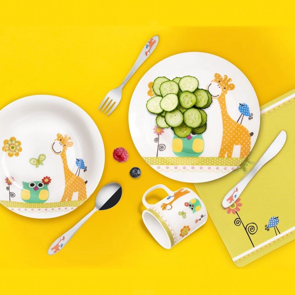 Doprajte svojmu dieťaťu radosť z jedla s kvalitnou porcelánovou sadou s veselými motívmi žirafy, sovičky a ďalších zvieratiek. Nadčasovo biely porcelán s farebnou potlačou podporuje samostatné stolovanie a spríjemní raňajky, polievky aj desiaty.