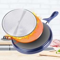 Táto štýlová palacinková panvica je navrhnutá na dokonale tenké palacinky, lievance aj omelety. Diamantová, keramická báza s časticami diamantu výborne vedie teplo a zabezpečuje rovnomerné vyprážanie bez pripaľovania, takže stačí minimum oleja. Masívny liaty hliník výborne akumuluje teplo a drží stabilnú teplotu po celej ploche.