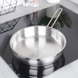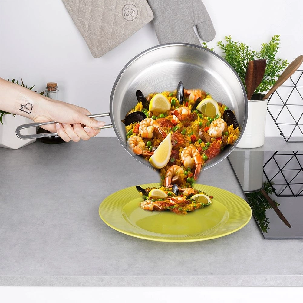 Táto nerezová panvica s nadčasovým vzhľadom je výbornou voľbou na prípravu mäsa, zeleniny aj palaciniek. Vyrobená z kvalitnej nerezovej ocele s matným povrchom a elegantným lesklým prúžkom na hornej časti, poskytuje dlhú životnosť a odolnosť voči korózii. Masívne steny a stabilná konštrukcia zaisťujú rovnomerné rozloženie tepla a spoľahlivý výkon pri smažení aj restovaní.
