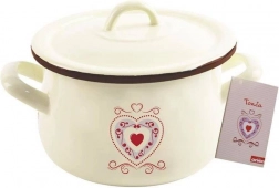 Elegantný smaltovaný hrniec s pokrievkou a pohodlnými úchytmi na každodenné varenie. Má objem 2,3 l, priemer 16 cm a je vhodný na všetky typy sporákov vrátane indukcie. Zdravotne nezávadná smaltovaná oceľ v krémovej farbe s motívom srdca, jednoduchá údržba a možnosť umývania v umývačke.