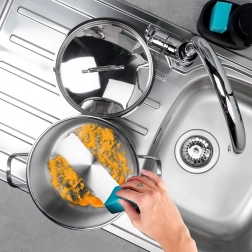 Vysokokvalitná nehrdzavejúca oceľ 304 zaručuje dlhú životnosť, hygienu a jednoduché čistenie – hrnce sú vhodné do umývačky.