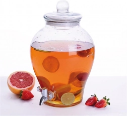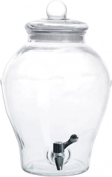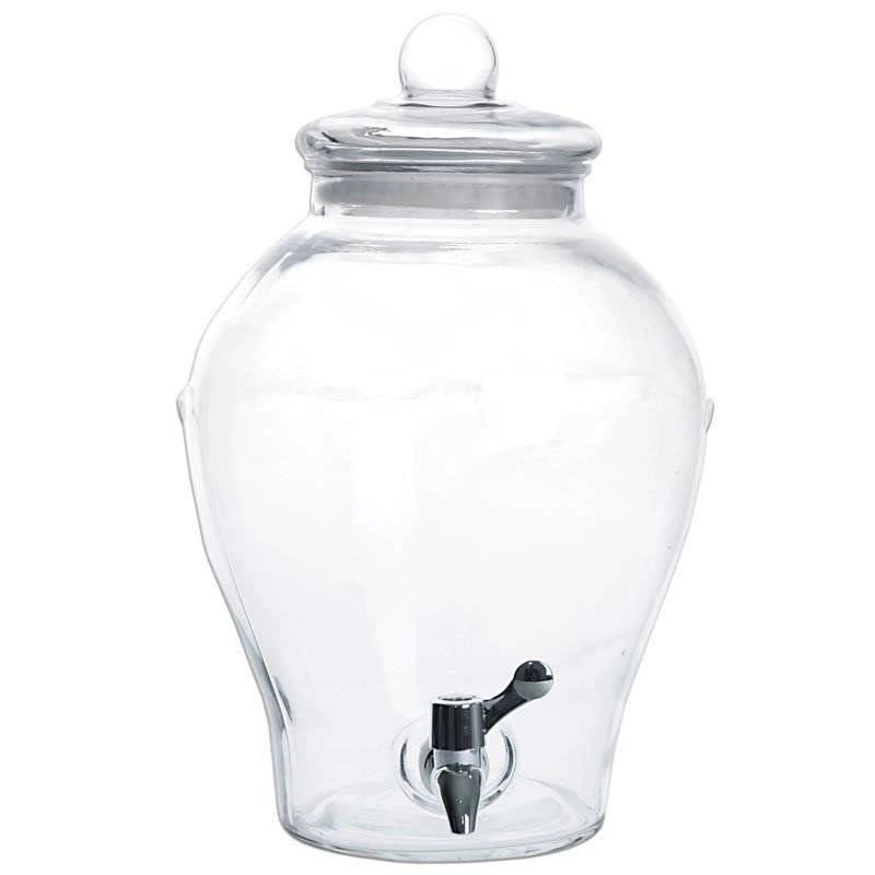 Elegantný sklenený dispenser na nápoje s objemom 6,5 litra ponúkne praktické a hygienické servírovanie vody, domácej limonády, ľadového čaju či punču. Priehľadné hrubostenné sklo je bezpečné pre potraviny a neutrálne k chuti, kovový kohútik umožňuje pohodlné čapovanie bez rozlievania.