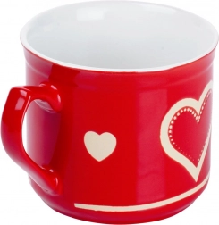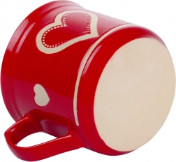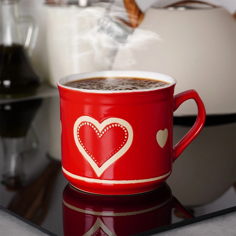 Tento priestranný hrnček z kvalitnej keramiky kombinuje praktickosť a pôvabný vzhľad. Červené prevedenie s jemnými srdiečkami vynikne v každej kuchyni a vďaka objemu 650 ml je ideálny pre veľké porcie čaju, kávy, kakaa alebo horúcich nápojov.