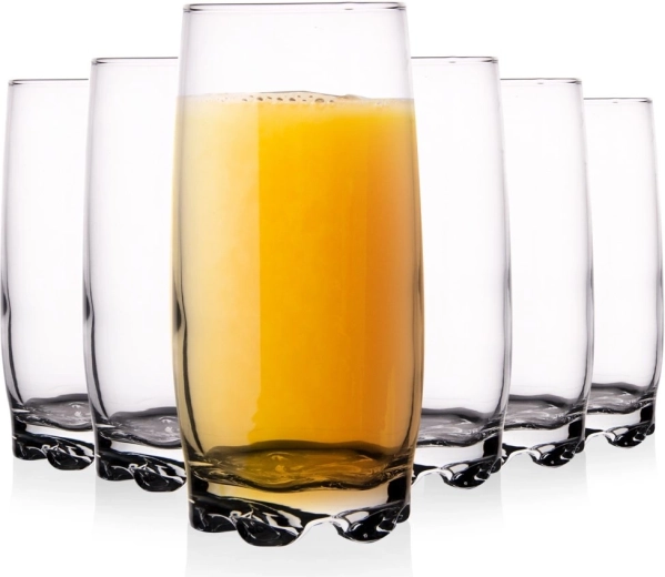 Elegantná sada 6 pohárov na nápoje s objemom 370 ml na každodenné použitie doma aj v gastronómii. Vysoké, číre sklo s masívnym dnom zabezpečuje stabilitu a krásne zvýrazní farby vody, džúsov, limonád aj ľadovej kávy. Vhodné do umývačky riadu pre jednoduché čistenie.