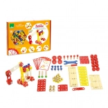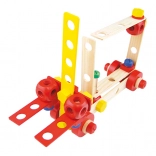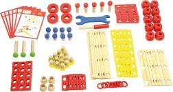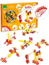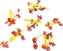 Farebné aj prírodné latky, skrutky, matice, kolieska a spojky umožnia deťom skladať vozidlá aj fantazijné konštrukcie a neustále ich prestavovať.