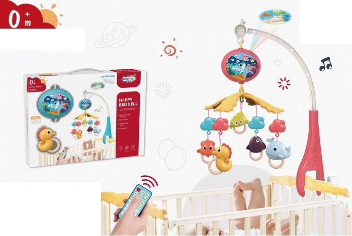 Kolotoč nad postieľku s projektorom vytvára pokojné prostredie na spánok aj zábavu. Jemné melódie a svetelné efekty pomáhajú bábätku relaxovať, zatiaľ čo pomaly rotujúce závesné prvky podporujú rozvoj zraku a sústredenia. Diaľkové ovládanie vám umožní spúšťať funkcie bez rušenia dieťaťa.