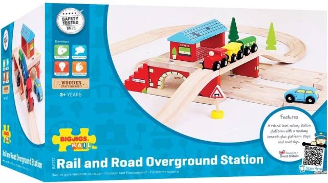 Táto pestrá drevená hračka replikuje ikonické londýnske nadzemné stanice. Obsahuje rozpoznateľné londýnske značky, stanovište taxi, pokladňu a schody na nástupište, čo robí z tejto hračky skvelý doplnok ku každej drevenej vláčikovej súprave. Veľká Stanica Nad Cestou umožňuje účastníkom cestnej premávky prechádzať popod stanicu, zatiaľ čo vlak prichádza a odchádza. Spája železničnú dráhu a vozovku, čo deťom poskytuje nespočetné možnosti k interakcii a hrám.