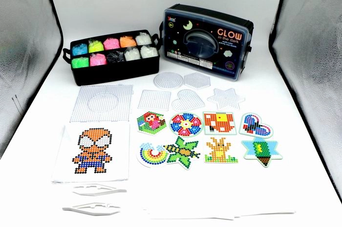 Objavte radosť z tvorenia so sadou zažehľovacích korálikov, ktorá prináša obrovské množstvo možností. Vďaka 10 000 kusom v rôznych farbách ľahko poskladáte originálne motívy a doplnky. Efekt glow in the dark premení hotové obrázky na žiariace dekorácie, ktoré budú baviť deti aj dospelých.