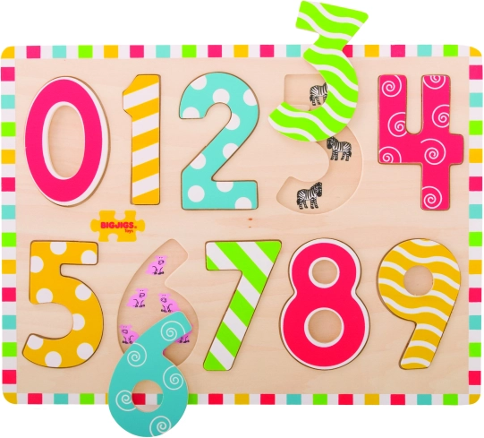 Drevená skladačka od Bigjigs Toys je ideálnym nástrojom pre výuku počítania. Pomáha rozvíjať schopnosti detí, zlepšuje koordináciu a zabezpečuje koncentráciu vďaka veselým obrázkom.