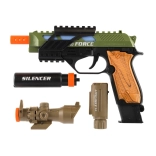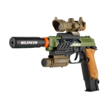 Realisticky vyzerajúca plastová pištoľ pre malých nadšencov akčných hier. Ponúka svetelné efekty, zvukové efekty a praktické doplnky ako zameriavač, svietidlo a tlmič. Funguje na batérie, ktoré sú súčasťou balenia.