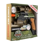 Táto plastová pištoľ poteší každého malého dobrodruha. Vďaka realistickému vzhľadu a efektom svetla a zvuku prináša viac zábavy a akcie do každej hry. Súčasťou je zameriavač, svetlo a tlmič, ktoré podčiarkujú autentický dojem pri hre.
