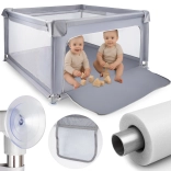 Ohrádka KIVO v univerzálnej sivej farbe je ideálnou voľbou do každej domácnosti. Robustný rám z oceľových rúrok, plastové (PP) spojky a poťah zo 100% polyesteru zaisťujú stabilitu, odolnosť a jednoduchú údržbu. Rozmery 120 × 120 × 65 cm poskytujú dostatok priestoru na hranie aj oddych.
