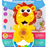 Roztomilé chrastítko v tvare levíka zaujme bábätká od 3 mesiacov veselými melódiami, detským smiechom a blikajúcim červeným svetielkom. Po pootočení krúžku začne hrať jednu z viacerých melódií a vydávať zvuky, ktoré podporujú rozvoj sluchu aj zraku. Súčasťou sú batérie, takže hračka je pripravená na okamžité použitie.