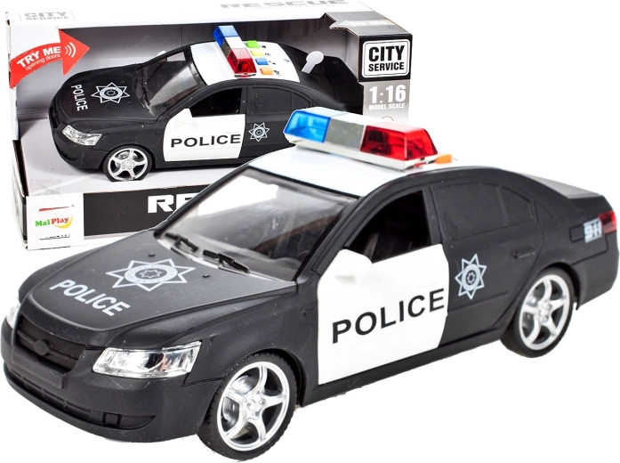 Vstúpte do sveta policajných zásahov s detailne spracovaným modelom policajného auta v mierke 1:16. Hra je vďaka viacerým realistickým zvukovým efektom ešte zábavnejšia – od klaksónu, cez sirénu, až po zvuk zamykania a cúvania. Ideálne na domáce hranie aj ako doplnok do zbierky.