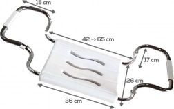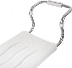 Profesionálne sedadlo do vane je ideálnou pomôckou pre seniorov, osoby s obmedzenou pohyblivosťou aj počas rekonvalescencie. Robustný kovový rám z pochromovanej ocele a odolná plastová sedacia plocha (cca 36 × 26 cm) zaručujú stabilitu a dlhú životnosť. Sedadlo sa jednoducho nasadí cez okraje vane a vďaka regulovateľným ramenám 42,5–65 cm sa prispôsobí rôznym šírkam.