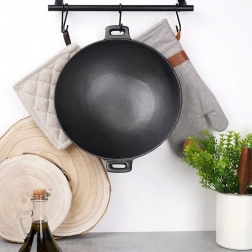 Objavte silu tradičnej liatiny v modernej kuchyni. Tento hlboký liatinový wok (výška cca 8 cm) je stvorený na rýchlu ázijskú prípravu, poctivé domáce vyprážanie aj zapekanie. Liatina drží stabilnú vysokú teplotu, čo je kľúčové pre rovnomerné prepečenie a intenzívnu chuť.