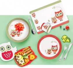 Táto sada detského príboru pomáha deťom osvojiť si správne návyky pri jedle. Kvalitná nehrdzavejúca oceľ v elegantnej striebornej farbe a veselý dekor so sovou zaručujú dlhú životnosť aj obľúbený vzhľad. Príbor je ľahký, ergonomicky tvarovaný a nemá ostré hrany, takže je pre deti bezpečný a pohodlný.