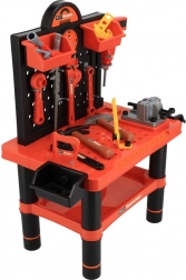 Objavte zábavnú detskú dielňu s bohatou sadou náradia, ktorá nadchne každého malého kutila. Praktický pracovný stôl s otvormi na skrutky a zverák, závesným panelom a úložnými priehradkami podporuje jemnú motoriku, kreativitu aj sústredenie. Súčasťou je aj hračkárska vŕtačka na batérie (nie sú súčasťou), kladivká, kľúče, skrutkovač a ďalšie doplnky pre realistickú hru.