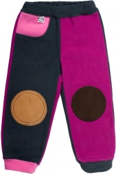 Praktické a hrejivé detské flísové nohavice s koženými nákolenníkmi pre extra odolnosť pri hrách na kolenách. Majú hlboké vrecko, elastický pás s vnútornou reguláciou a široké lemy pre pohodlné nosenie. Originálne šachovnicové farebné prevedenie a nákolenníky v odlišných farbách na každom kolene robia z každého kusu jedinečný kúsok.