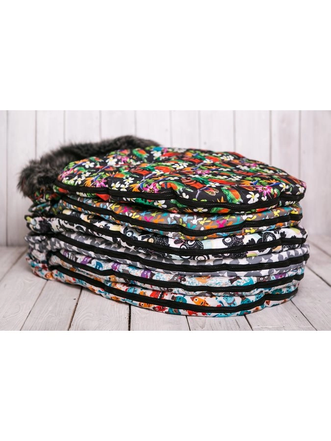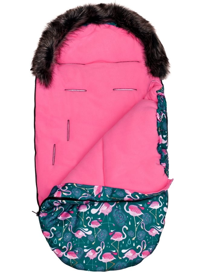 Praktické prevedenie so zipsom po celom obvode umožňuje rýchle uloženie aj vybratie dieťaťa a jednoduché vetranie. Otvory pre 5-bodové bezpečnostné pásy zaisťujú kompatibilitu s kočíkmi a autosedačkami, zadné vrecko potom pomáha fusak pevne zafixovať na kočíku alebo saniach. Univerzálne rozmery cca 98 × 53 cm sedia väčšine športových aj hlbokých kočíkov.