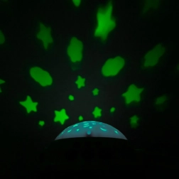 Projektor premieta farebné hviezdičky a môže slúžiť ako nočná lampička. Vytvorí príjemnú atmosféru, ktorá bábätko upokojí a pripraví na spánok.