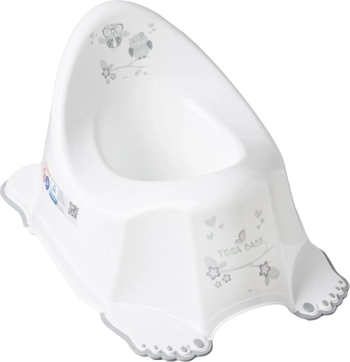 Učte svoje dieťa hygienickým návykom hravou formou. Hrajúci detský nočník s bielym dizajnom a roztomilou sovou prehrá po vycikaní melódiu, ktorá dieťa pozitívne motivuje. Protišmyková spodná strana zaisťuje stabilitu a bezpečnosť na hladkých podlahách.