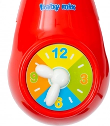 Figúrky možno ľahko odmontovať a používať ako hrkálky (výška cca 10 cm). Na boku je umiestnený atraktívny farebný ciferník, ktorý deti láka k dotyku a otáčaniu ručičiek. Všetky funkcie – melódie, rotácia, projekcia – možno spúšťať nezávisle, aby ste vytvorili ideálnu atmosféru pre vaše bábätko.