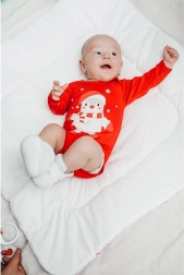 Toto hebké a pohodlné body s dlhým rukávom zaujme krásnou červenou farbou a veselým zimným motívom tučniaka. Praktické zapínanie na patentky na ramienku a medzi nožičkami urýchli prebaľovanie a uľahčí obliekanie aj u najmenších.