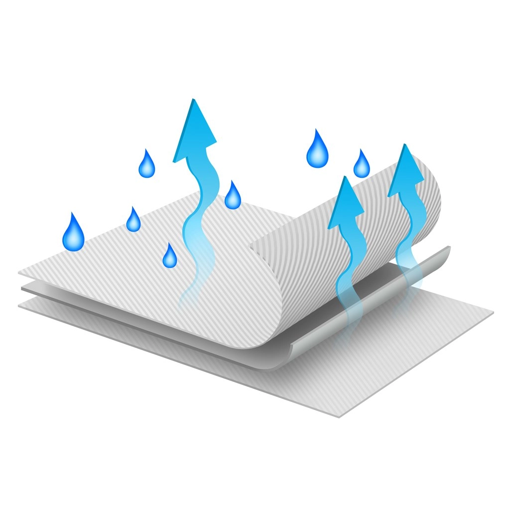 Viac vrstiev s priedušnou štruktúrou pomáha odvádzať vlhkosť a udržiavať povrch suchý a pohodlný pri používaní.