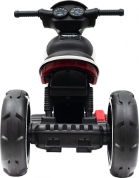 Motorka poteší LED osvetlením (blikanie vpredu aj vzadu), zvukovými efektmi a možnosťou prehrávať obľúbenú hudbu cez USB/MP3. Široké a kvalitné plastové pneumatiky, pohodlné sedadlo a robustná konštrukcia prinášajú komfort pri domácom aj vonkajšom použití. Na jedno nabitie vydrží jazdiť 1–2 hodiny; odporúča sa používať ochrannú prilbu.