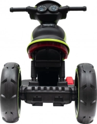 Štýlová detská elektrická motorka Baby Mix Police v zelenej farbe ponúkne deťom od 3 do 7 rokov bezpečnú jazdu rýchlosťou 2–4 km/h, pohodlné široké sedadlo a stabilné veľké kolesá. Dva motory 6V/24W s pohonom zadných kolies a batéria 6V/7Ah zaistia až 1–2 hodiny zábavy. Nechýbajú LED svetlá, zvukové efekty a možnosť prehrávania hudby cez USB/MP3.