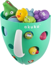 Praktický sivý kôš na hračky do vane AKUKU pomáha udržať poriadok okolo vane aj sprchy. Vďaka perforovanému dnu a stenám voda rýchlo odteká a hračky aj doplnky ľahko preschnú. Pevný úchyt uľahčuje prenášanie a prísavky umožňujú bezpečné uchytenie na hladký povrch bez vŕtania.