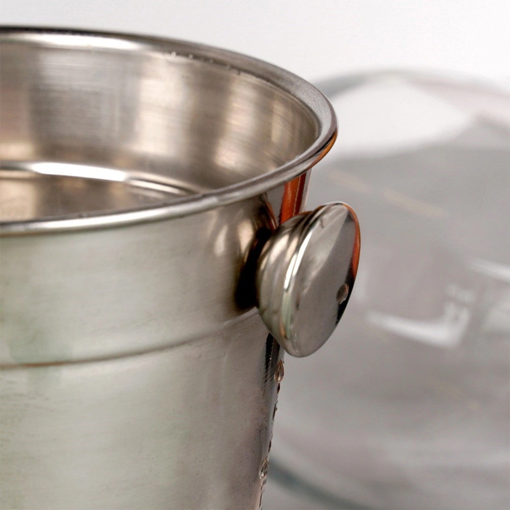 Štýlové nerezové vedro na ľad s objemom 700 ml udrží vaše nápoje dlhšie studené a dodá servírovaniu šmrnc. Má praktické bočné úchyty na jednoduché prenášanie, odolnú nerezovú konštrukciu a klasický nadčasový vzhľad, ktorý skvele zapadne na každý stôl.